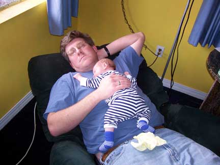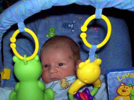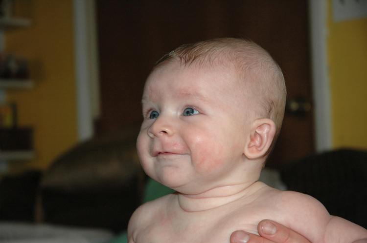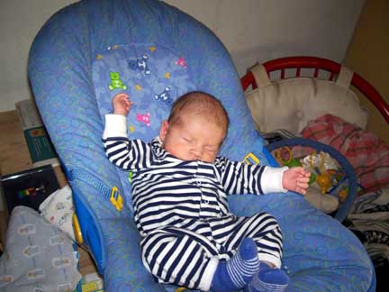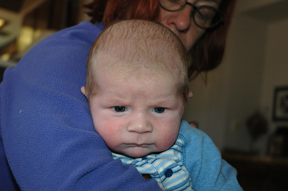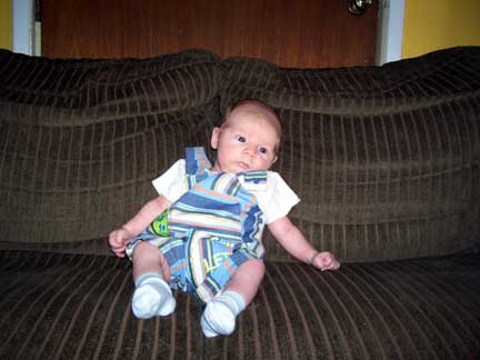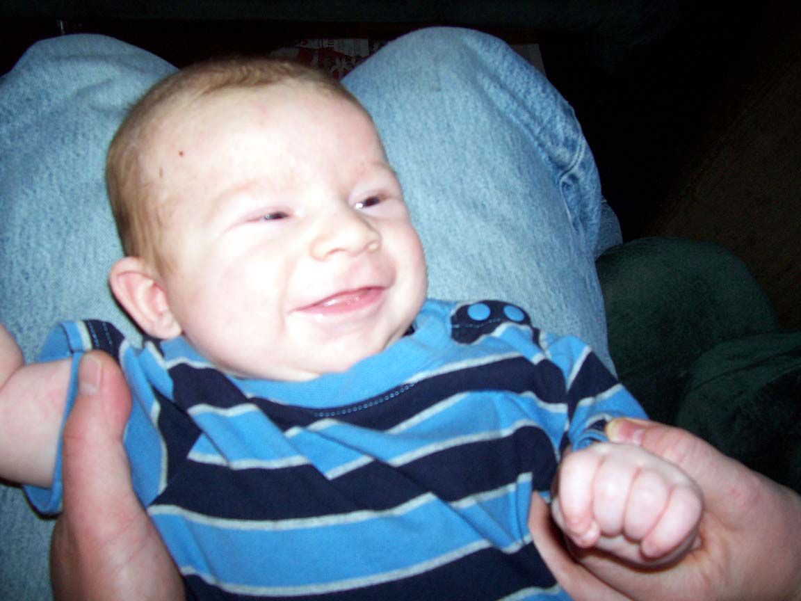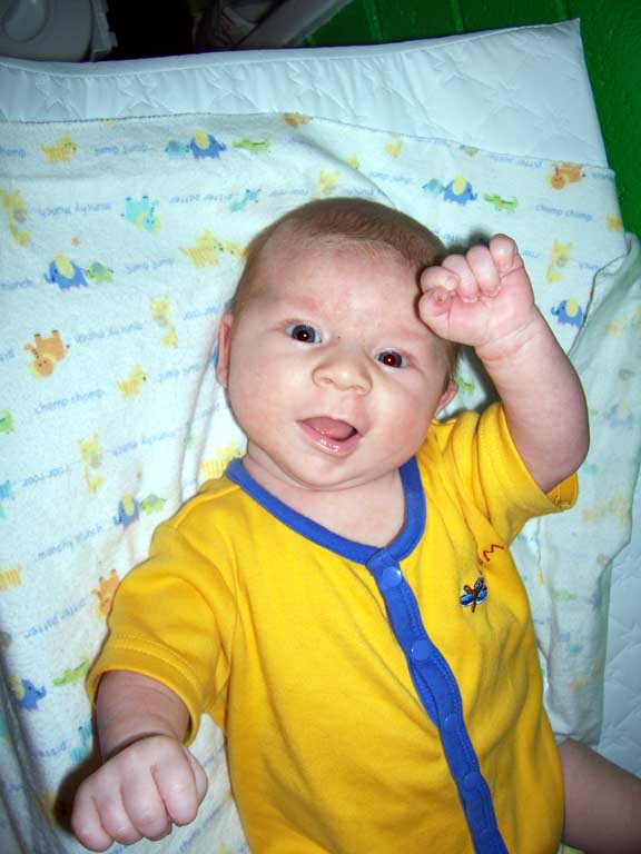 Henry has his first doctor visit. He weighed in at 9 lbs. 8 oz. and 23 inches for his height. He is growing like a weed and his cheeks are filling out like a chipmunk.