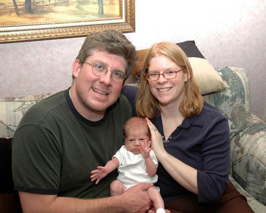 over her shoulder and he smiles more at Mommy and Daddy. He is happiest