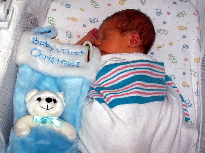 Henry celebrates his very 1st Christmas out of the womb! Mom and Dad have been very grateful for this beautiful gift this year. Henry received many wonderful presents from all of his relatives. His favorite is something Mom and Dad calls his “magic blanket”. It’s a wonderfully soft blanket with blue bears all over it. It helps keep him warm and lulls him to sleep when Mom and Dad put him in the bassinet.