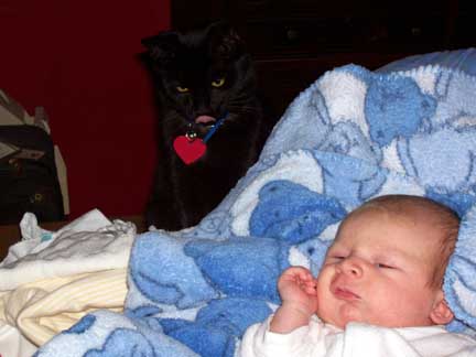 Henry finally came home from the hospital. He had to stay a couple days longer than the standard 48 hours because he had some jaundice that the pediatrician had to check on. This took a couple weeks for it to fully go away but Mom and Dad were naturally worried yet joked about their “little yellow son”. The pets of the Gehl household welcomed Henry with no problem. Sadie is always curious and always wants to lick Henry and the cats (Jane and Ike) could really care less about Henry at this point.